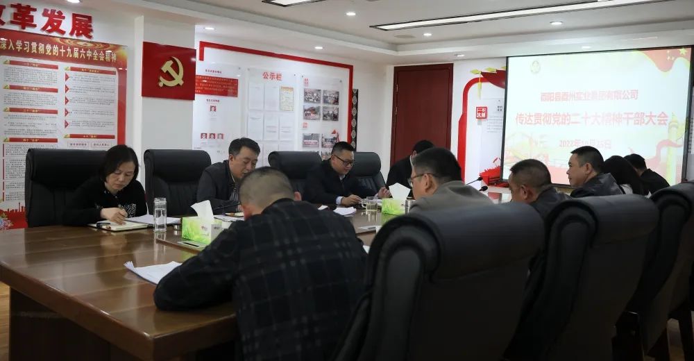 10月25日,酉州實(shí)業(yè)集團(tuán)召開傳達(dá)貫徹中國(guó)共產(chǎn)黨第二十次全國(guó)代表大會(huì)精神干部大會(huì)。會(huì)議傳學(xué)習(xí)了中國(guó)共產(chǎn)黨第二十次全國(guó)代表大會(huì)、中國(guó)共產(chǎn)黨第二十屆中央委員會(huì)第一次全體會(huì)議精神。集團(tuán)公司班子成員及各部室、子公司負(fù)責(zé)人參加。