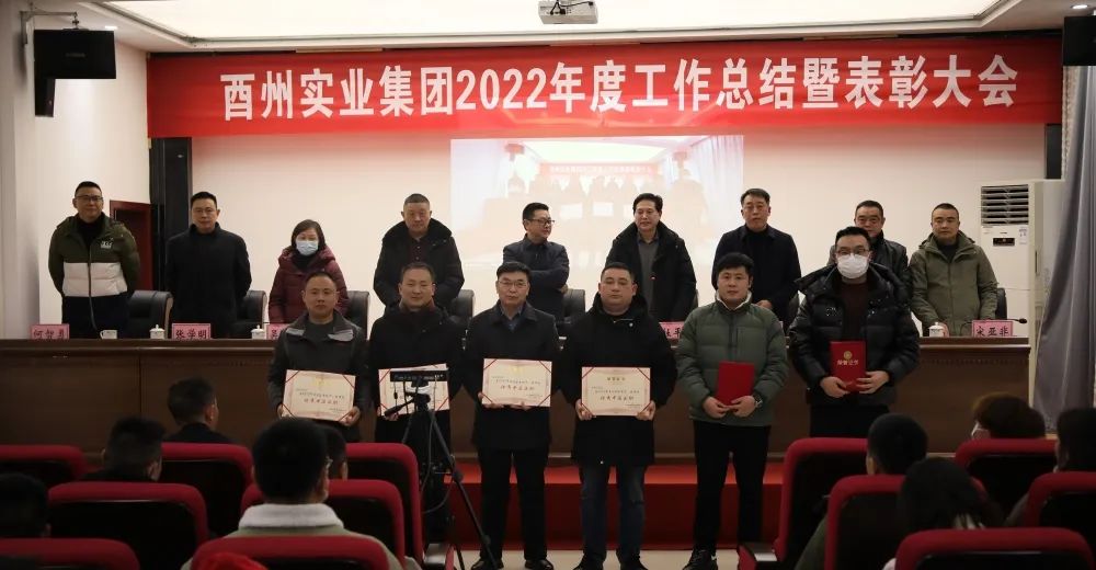 【1月19日訊  劉昌斌/陳鵬】 2023年1月18日下午,酉州實業集團有限公司組織召開2022年度工作總結暨表彰大會,集團公司全體干部職工參加會議,會議由集團監事長杜平周主持。大會集中學習了《2023年元旦春節期間糾“四風”樹新風工作提示》《2023年整治無事酒工作提醒》。對在2022年工作中表現突出的優秀個人、優秀部室(子公司)和優秀黨支部進行了表彰。集團公司董事長張宗銀對2022年工作完成情況進行了全面總結,對2023年工作指明了方向。