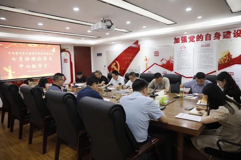 【7月14訊 田堃靈】 7月10日,酉州實業(yè)集團黨總支召開7月份理論學(xué)習(xí)中心組學(xué)習(xí)會議,集團黨總支書記張宗銀主持會議并講話,班子成員和各部室、子公司主要負責(zé)人參加學(xué)習(xí)。會上,集中學(xué)習(xí)了《習(xí)近平著作選讀》第一卷<經(jīng)濟工作要適應(yīng)經(jīng)濟發(fā)展新常態(tài)>;認真貫徹學(xué)習(xí)了市委六屆三次全會精神和縣委十五屆五次全會精神,張光流、杜平周圍繞全會精神開展研討發(fā)言,張宗銀安排部署貫徹落實具體措施。