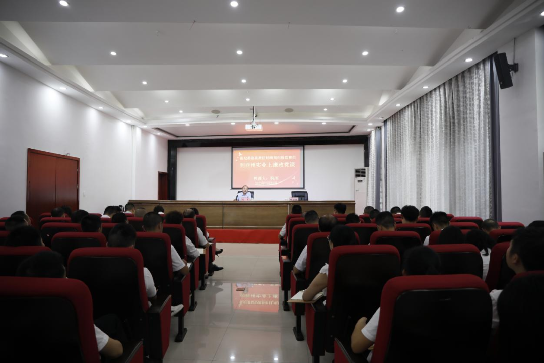 【7月20訊 田堃靈】 “國(guó)企領(lǐng)域是腐敗易發(fā)多發(fā)的重點(diǎn)領(lǐng)域,所以我們要經(jīng)常用黨章黨規(guī)為自己的行為敲響警鐘.......”7月20日,酉州實(shí)業(yè)集團(tuán)邀請(qǐng)縣紀(jì)委監(jiān)委派駐財(cái)政局紀(jì)檢監(jiān)察組組長(zhǎng)張軍開(kāi)展清廉國(guó)企專題黨課。集團(tuán)班子成員、全體黨員、中層副職以上人員、各部室(子公司)關(guān)鍵崗位和風(fēng)險(xiǎn)崗位相關(guān)人員共計(jì)75人濟(jì)濟(jì)一堂,接受“廉潔洗禮”。