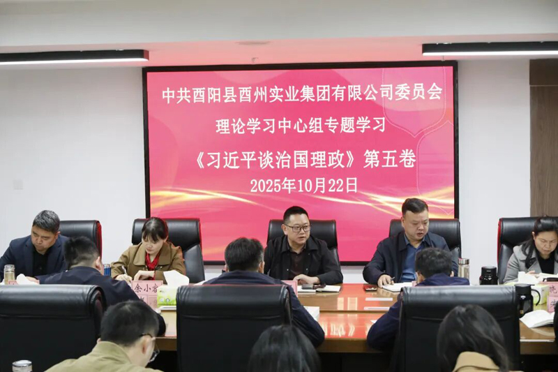 10月22日,酉州實業集團黨委召開理論學習中心組學習會議。集團黨委書記張宗銀主持會議并講話,黨委成員、班子成員和各部室、子公司負責人參加學習。會議專題學習《習近平談治國理政》第五卷部分章節,深入學習領會習近平新時代中國特色社會主義思想的世界觀和方法論,進一步以黨的創新理論武裝頭腦、指導實踐、推動工作。部分同志圍繞學習內容并結合自身工作實際作了交流發言。