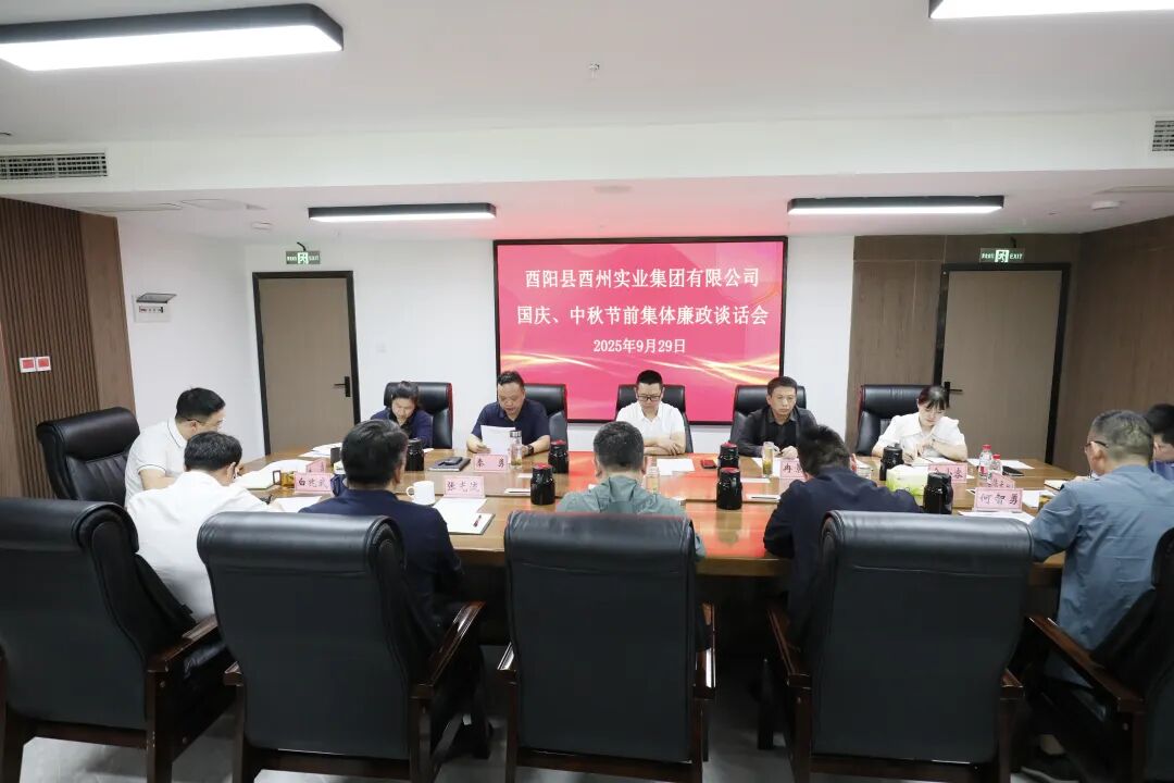 9月29日,酉州實業集團召開國慶、中秋節前集體廉政談話會,集團全體班子成員,各部室、子公司負責人參加會議。會議集中學習了中央紀委辦公廳最新印發的《關于國慶中秋期間嚴格落實中央八項規定精神、從嚴糾治“四風..