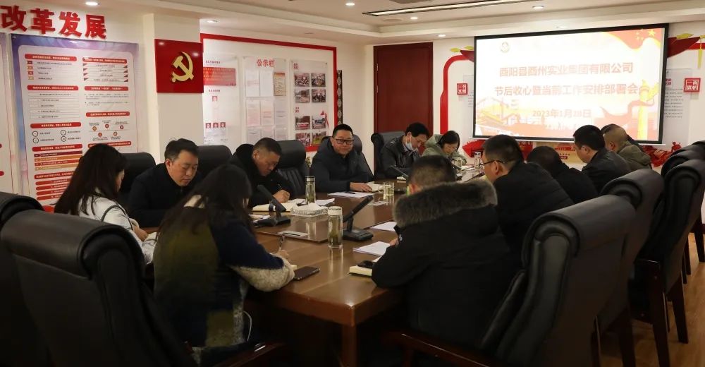 1月28日下午,春節(jié)后上班第一天,酉州實業(yè)集團組織召開節(jié)后收心暨當前工作安排部署會。會議由集團董事長張宗銀主持,全體班子成員、各部室(子公司)主要負責人參加。會議專題傳達學(xué)習了重慶市建設(shè)成渝地區(qū)雙城經(jīng)濟圈工作推進大會精神,立足酉州實業(yè)工作實際就如何更快更好在2023年工作中起好步、開好局作了具體工作安排部署。